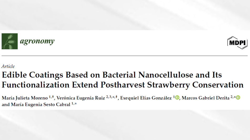 El trabajo fue publicado en la revista Agronomy (MDPI) y presenta el desarrollo de recubrimientos comestibles basados en nanocelulosa bacteriana y su funcionalización, con el objetivo de extender la conservación poscosecha de frutilla, contribuyendo a mejorar la calidad y vida útil del producto.