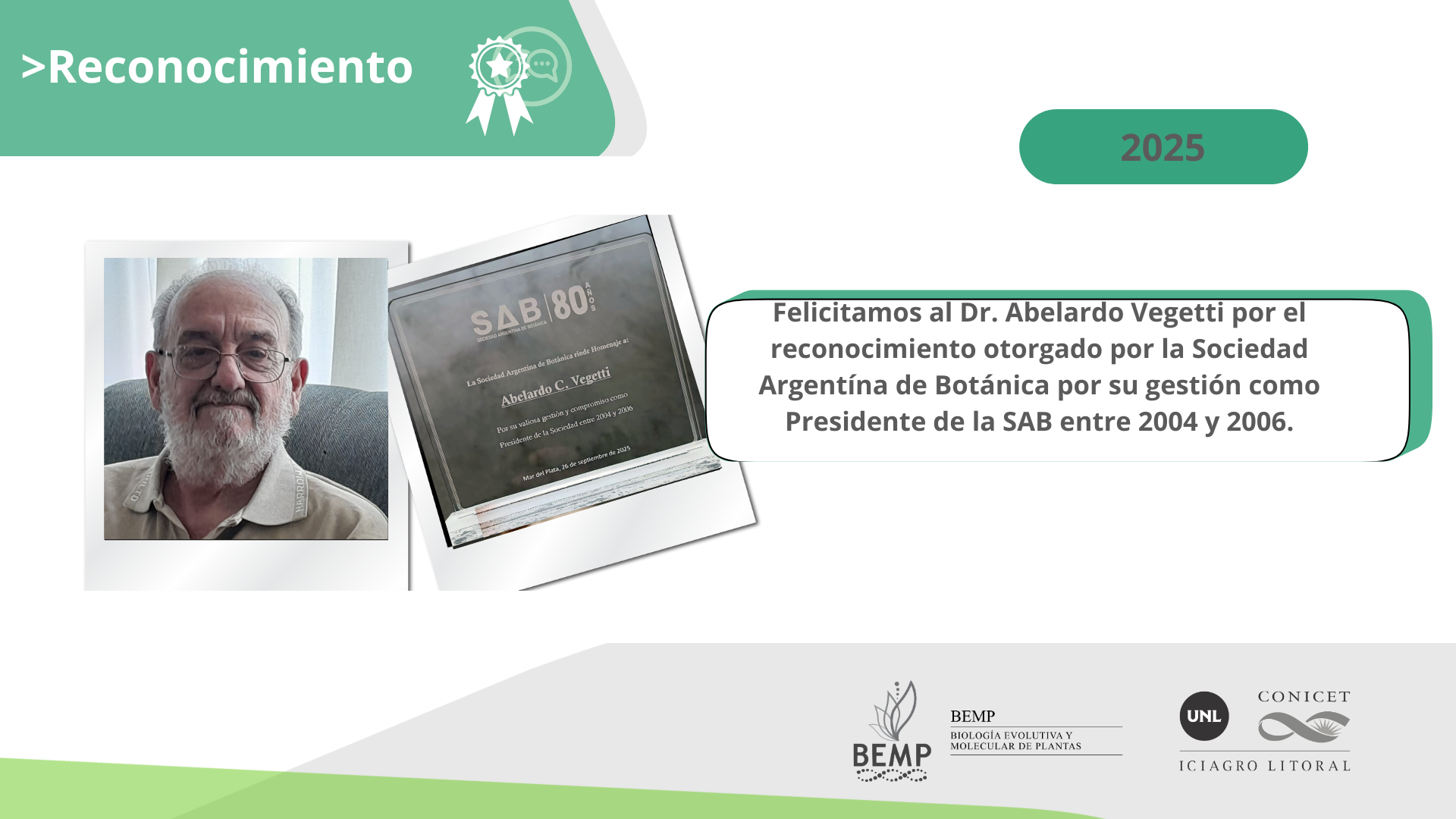 Este reconocimiento resalta su trayectoria académica y científica, así como su aporte al fortalecimiento de la botánica en Argentina. Desde el ICIAGRO Litoral felicitamos al Dr. Vegetti por este merecido homenaje, que refleja el valor de su trabajo y dedicación a lo largo de los años.